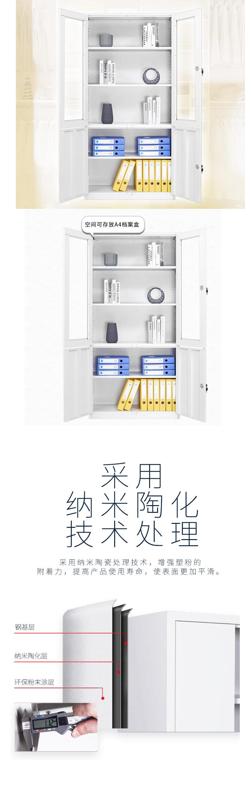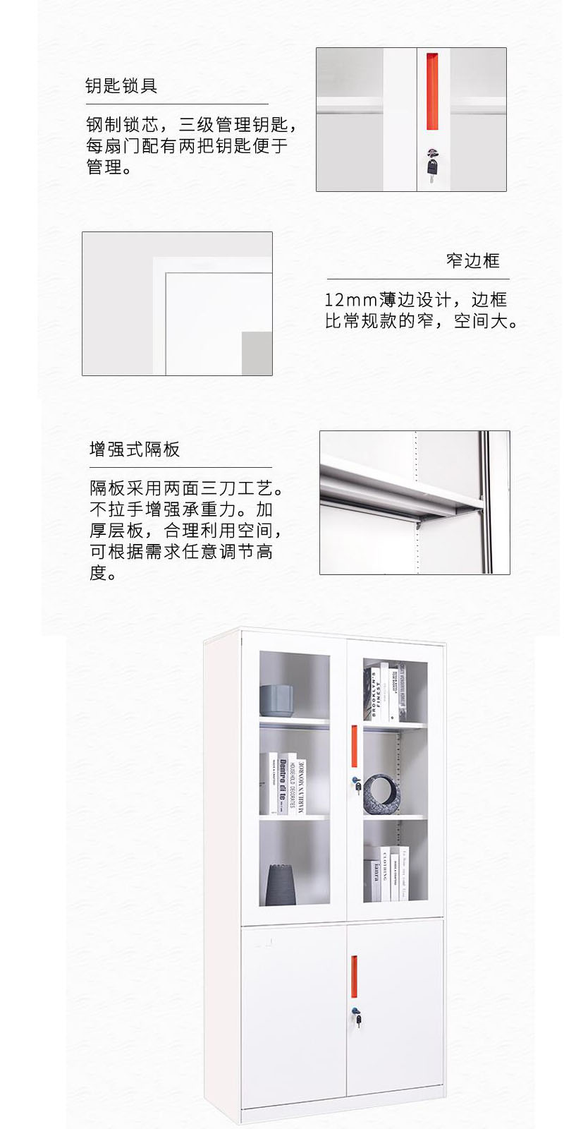 中信 钢制柜大器械文件柜GZG-05白色上玻下铁钢制柜 自营
