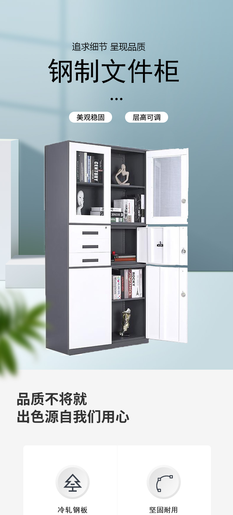 中信 文件柜铁皮柜钢制文件柜GZG-29玻璃中二斗