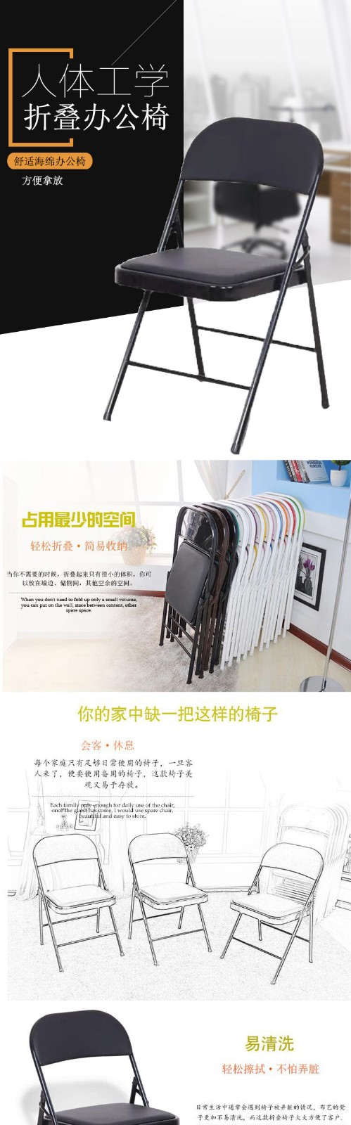 中信 会议椅会客椅培训椅 折叠椅Y-205(黑色) 自营