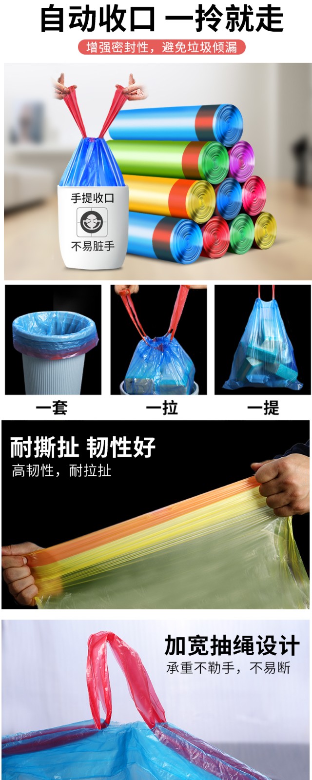 东澜格垃圾袋抽绳垃圾袋彩色垃圾袋 J45-C (15个)颜色随机发 自营