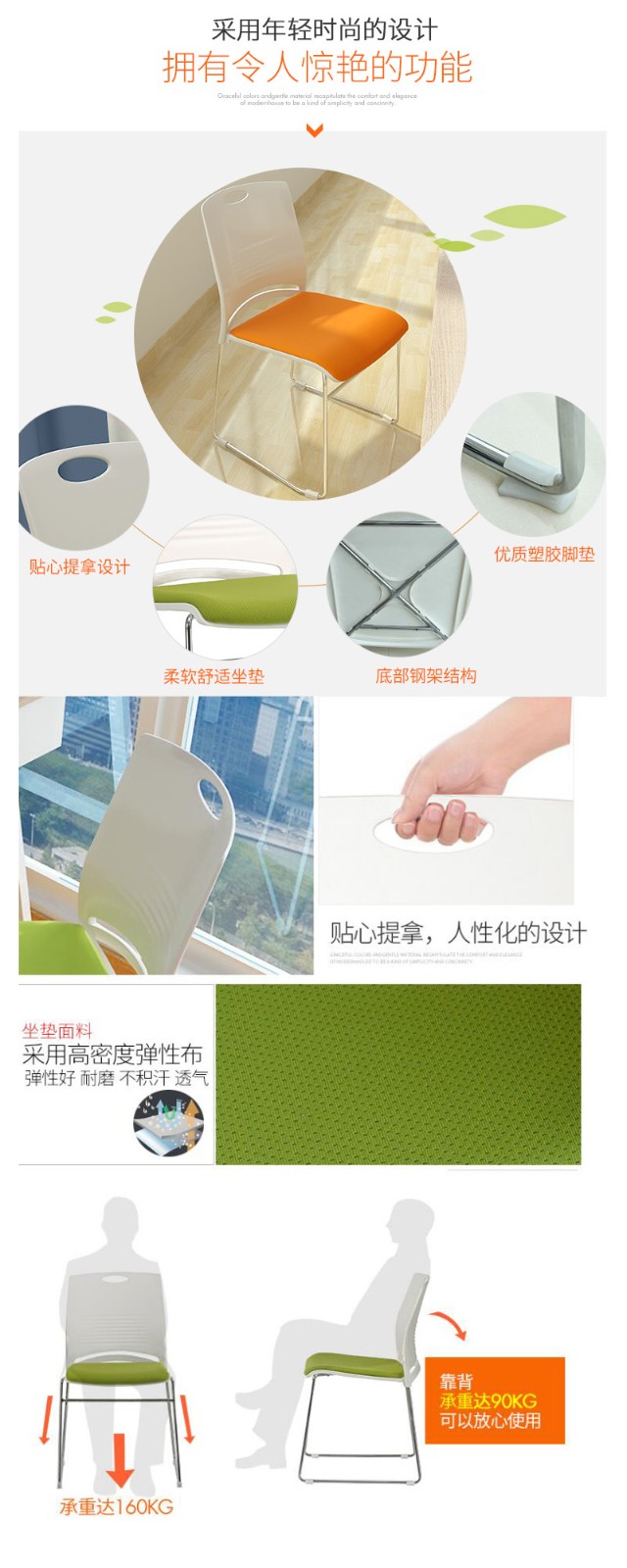中信 会议椅弓形椅办公椅会议椅Y-100E(黑色加坐垫) 自营